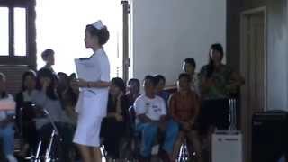 Perawat dari klinik dan rumah sakit menampilkan koleksi baru pakaian profesional di Hari Perawat Internasional. Para perawat wanita memperagakan untuk ...