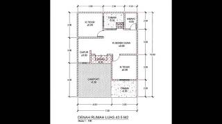- Menggambar Denah Rumah Tipe 43.5 m2 Di Lahan 7 m x 10 m